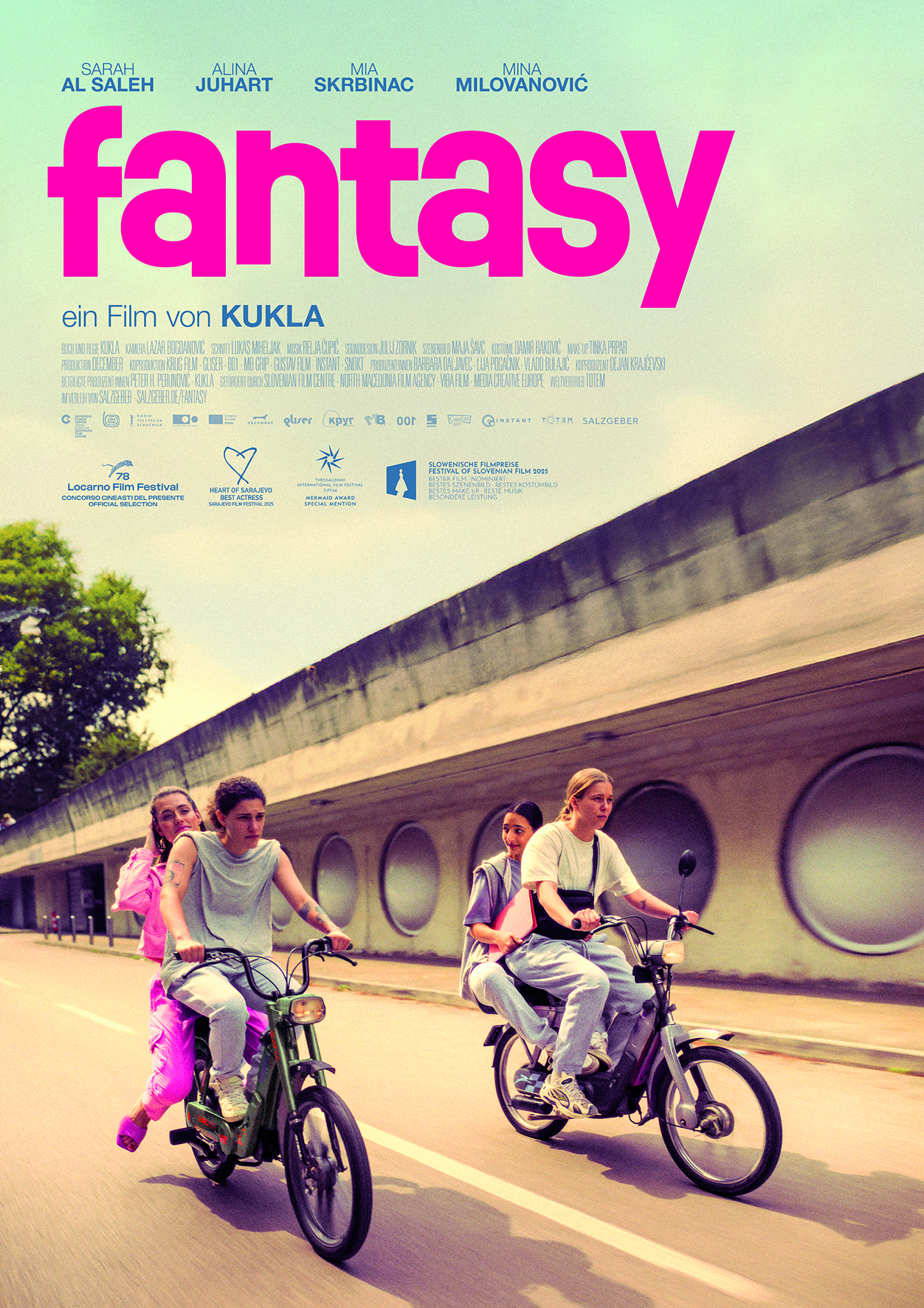 KUKLA (Buch & Regie), 1991 in Brežice geboren, ist eine slowenische Filmregisseurin und Musikerin. Bis 2014 studierte sie Film- und Fernsehregie an der Akademie für Theater, Radio, Film und Fernsehen in Ljubljana. Sie hat mehrere Kurzfilme und Musikvideos gedreht, die international auf Festivals gezeigt wurden. Insbesondere „Sisters“ (2021) fand große Aufmerksamkeit und wurde mehrfach ausgezeichnet. „Fantasy“ ist ihr erster Spielfilm. Der Film feierte seine Premiere 2025 in Locarno. Beim Festival des Slowenischen Films in Portorož wurde er mit fünf Auszeichnungen bedacht.